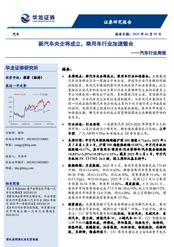 【18597】【华龙证券】汽车行业周报:新汽车央企将成立,乘用车行业加速整合 12小时前 7月 1 预览结束,本文件为PDF文档,一共21页,请购买后,下载查看 资源下载下载价格59 H币VIP免费升级VIP立即购买下载或充值问题请将订单号发送到:2907878669@qq.com ,我们会在24小时内为您处理 汽车物流