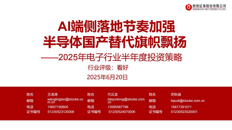 【18377】【浙商证券】2025年电子行业半年度投资策略:AI端侧落地节奏加强,半导体国产替代旗帜飘扬 12小时前 7月 1 预览结束,本文件为PDF文档,一共41页,请购买后,下载查看 资源下载下载价格59 H币VIP免费升级VIP立即购买下载或充值问题请将订单号发送到:2907878669@qq.com ,我们会在24小时内为您处理 科技电子