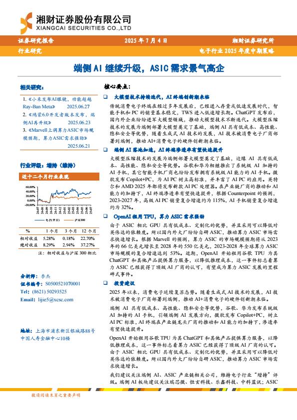 【18427】【湘财证券】电子行业2025年度中期策略:端侧AI继续升级,ASIC需求景气高企 7小时前 7月 2 预览结束,本文件为PDF文档,一共23页,请购买后,下载查看 资源下载下载价格59 H币VIP免费升级VIP立即购买下载或充值问题请将订单号发送到:2907878669@qq.com ,我们会在24小时内为您处理 科技电子
