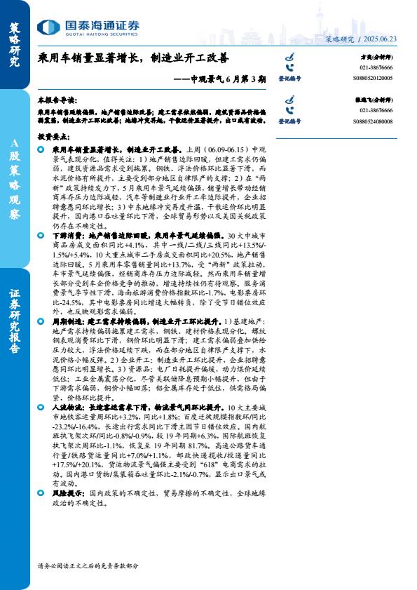 【18705】【国泰海通证券】中观景气6月第3期:乘用车销量显著增长,制造业开工改善 16小时前 7月 2 预览结束,本文件为PDF文档,一共12页,请购买后,下载查看 资源下载下载价格59 H币VIP免费升级VIP立即购买下载或充值问题请将订单号发送到:2907878669@qq.com ,我们会在24小时内为您处理 汽车物流