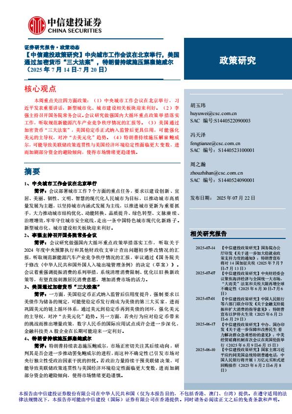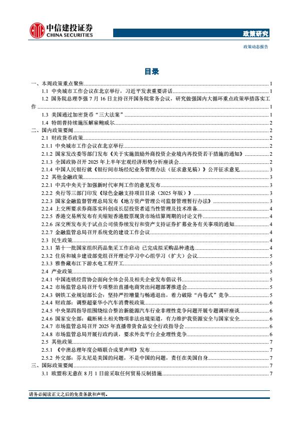 【18340】【中信建投】【政策研究】中央城市工作会议在北京举行,美国通过加密货币“三大法案”,特朗普持续施压解雇鲍威尔(2025年7月14日 15小时前 7月 1 预览结束,本文件为PDF文档,一共15页,请购买后,下载查看 资源下载下载价格59 H币VIP免费升级VIP立即购买下载或充值问题请将订单号发送到:2907878669@qq.com ,我们会在24小时内为您处理 金融分析
