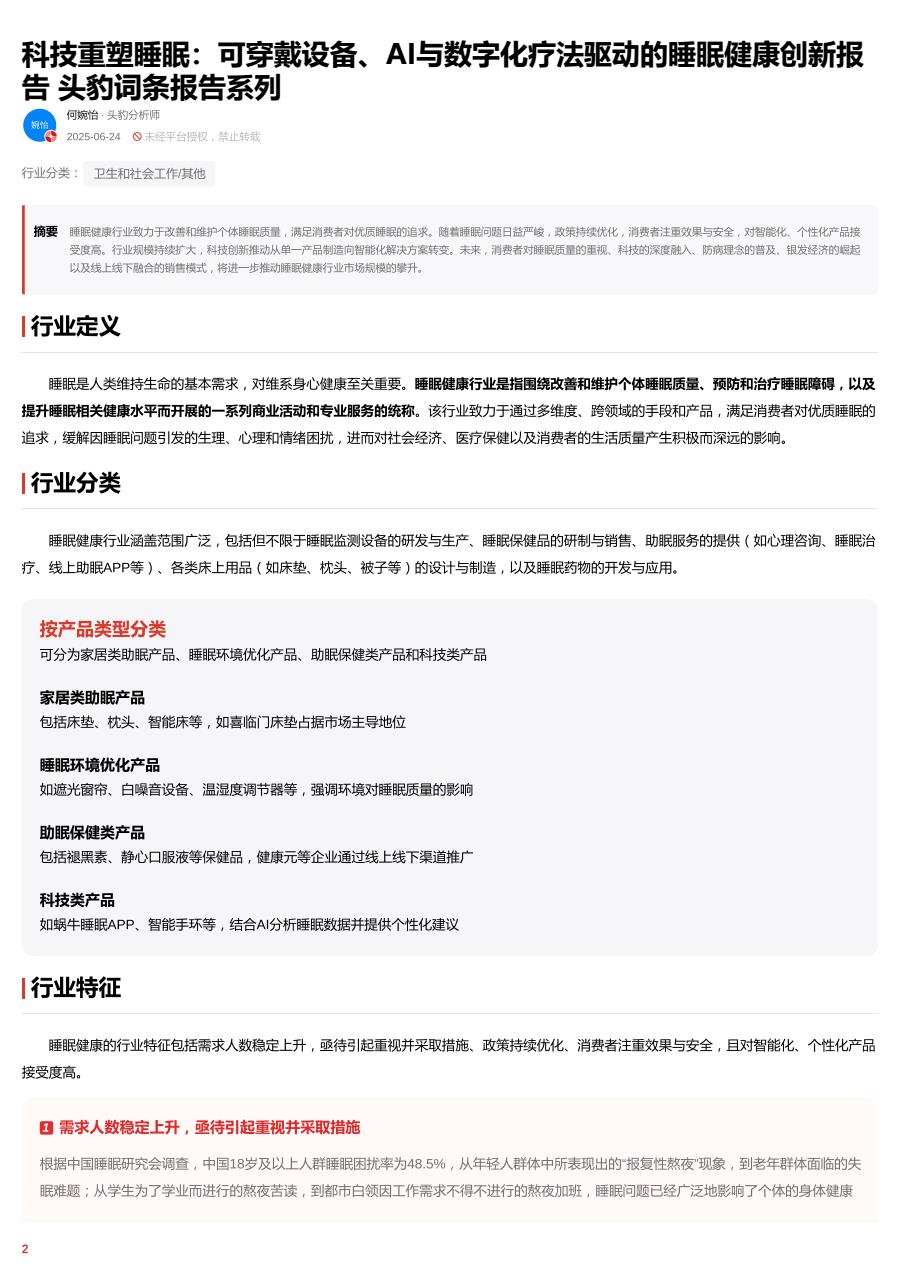 【19204E】【头豹研究院】头豹研究院科技重塑睡眠:可穿戴设备、AI与数字化疗法驱动的睡眠健康创新报告 头豹词条报告系列 1周前 7月 5 预览结束,本文件为PDF文档,一共17页,请购买后,下载查看 资源下载下载价格59 H币VIP免费升级VIP立即购买下载或充值问题请将订单号发送到:2907878669@qq.com ,我们会在24小时内为您处理 医疗保健