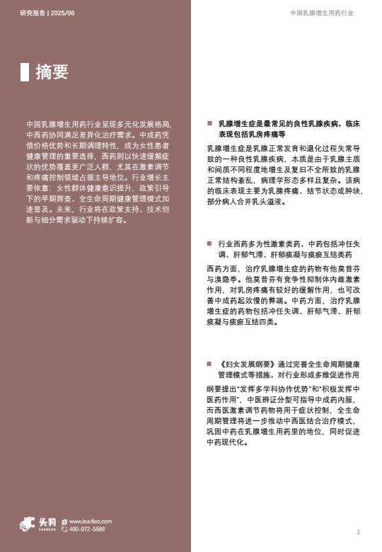 【19206E】【头豹研究院】2025年中国乳腺增生用药行业概览:当“她未言说”的疼痛被听见,中国女性健康市场是否已按下“加速键” 1周前 7月 5 预览结束,本文件为PDF文档,一共21页,请购买后,下载查看 资源下载下载价格59 H币VIP免费升级VIP立即购买下载或充值问题请将订单号发送到:2907878669@qq.com ,我们会在24小时内为您处理 医疗保健