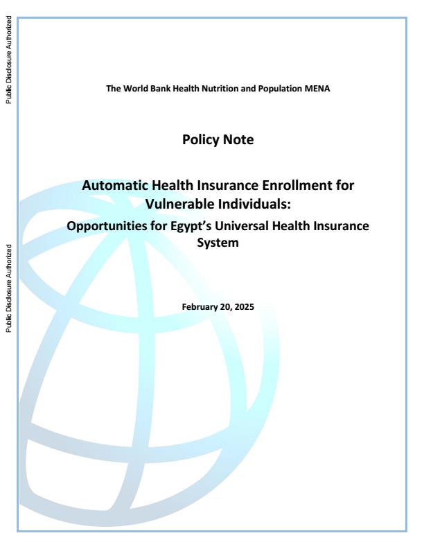 【19227E】【世界银行】弱势群体的自动健康保险登记:埃及全民健康保险制度的机遇 1周前 7月 11 预览结束,本文件为PDF文档,一共27页,请购买后,下载查看 资源下载下载价格59 H币VIP免费升级VIP立即购买下载或充值问题请将订单号发送到:2907878669@qq.com ,我们会在24小时内为您处理 医疗保健