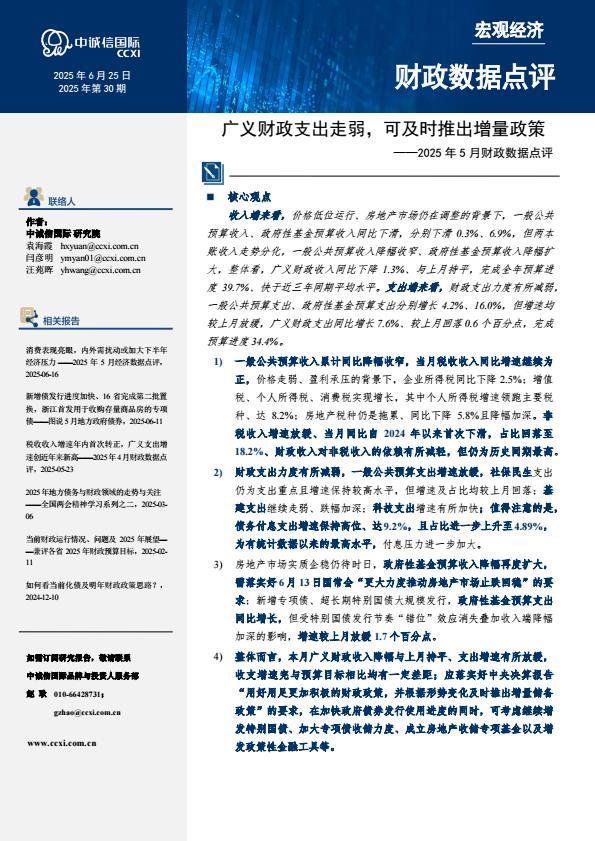【19016E】广义财政支出走弱,可及时推出增量政策——2025年5月财政数据点评 1周前 7月 4 预览结束,本文件为PDF文档,一共9页,请购买后,下载查看 资源下载下载价格59 H币VIP免费升级VIP立即购买下载或充值问题请将订单号发送到:2907878669@qq.com ,我们会在24小时内为您处理 科技电子