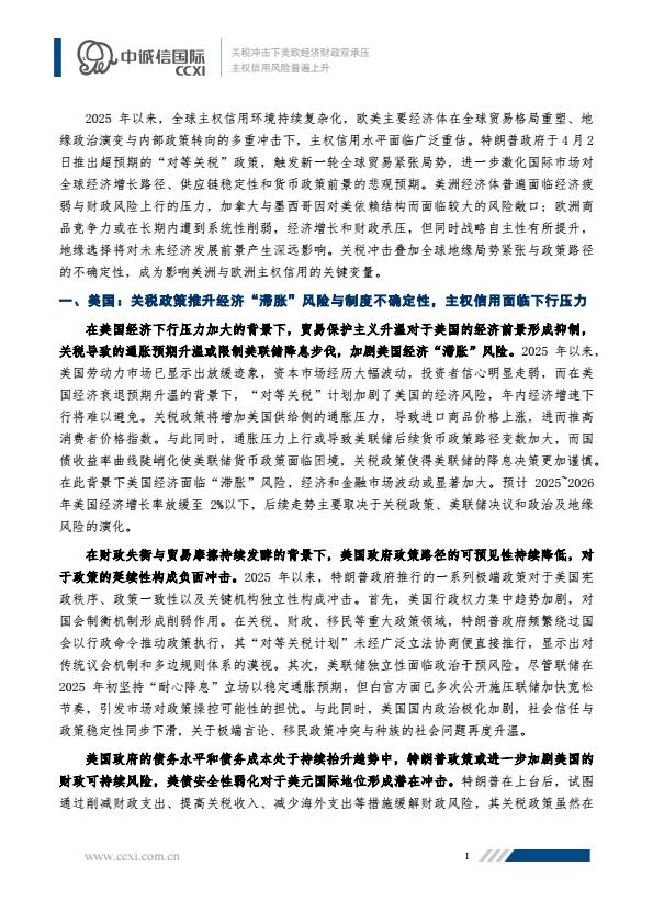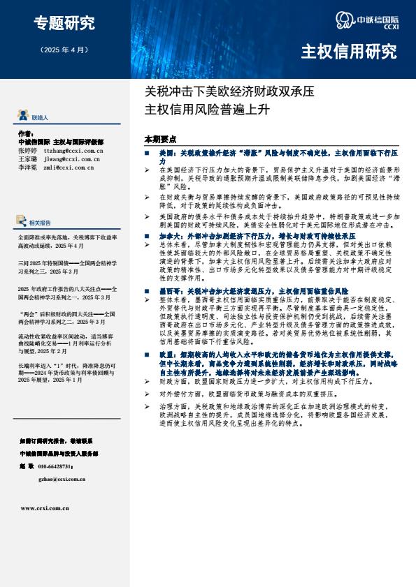 【19021E】关税冲击下美欧经济财政双承压,主权信用风险普遍上升 1周前 7月 5 预览结束,本文件为PDF文档,一共8页,请购买后,下载查看 资源下载下载价格59 H币VIP免费升级VIP立即购买下载或充值问题请将订单号发送到:2907878669@qq.com ,我们会在24小时内为您处理 金融分析