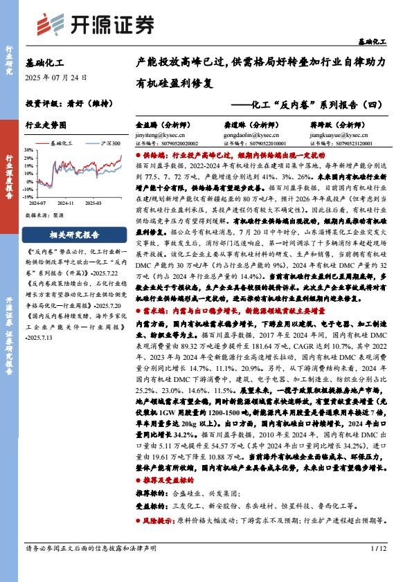 【19006E】基础化工行业化工“反内卷”系列报告(四):产能投放高峰已过供需格局好转叠加行业自律助力有机硅盈利修复 1周前 7月 5 预览结束,本文件为PDF文档,一共12页,请购买后,下载查看 资源下载下载价格59 H币VIP免费升级VIP立即购买下载或充值问题请将订单号发送到:2907878669@qq.com ,我们会在24小时内为您处理 能源化工