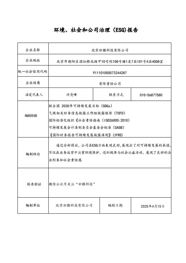 【19394E】【北京妙微科技】2025环境、社会与公司治理(ESG)报告 1天前 7月 2 预览结束,本文件为PDF文档,一共58页,请购买后,下载查看 资源下载下载价格59 H币VIP免费升级VIP立即购买下载或充值问题请将订单号发送到:2907878669@qq.com ,我们会在24小时内为您处理 能源化工