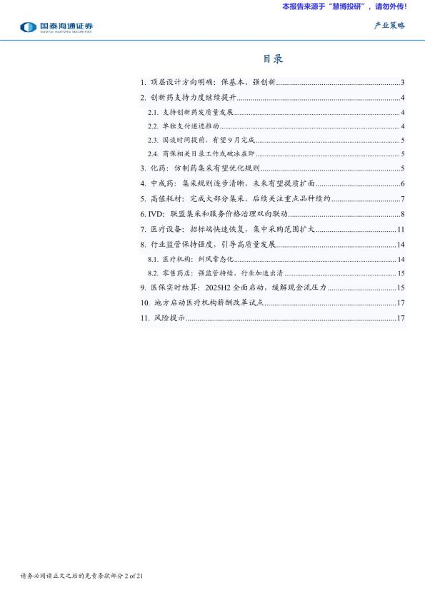 【19337E】【国泰海通】产业策略:2025下半年医药产业政策展望,保基本、强创新 1天前 7月 2 预览结束,本文件为PDF文档,一共21页,请购买后,下载查看 资源下载下载价格59 H币VIP免费升级VIP立即购买下载或充值问题请将订单号发送到:2907878669@qq.com ,我们会在24小时内为您处理 医疗保健