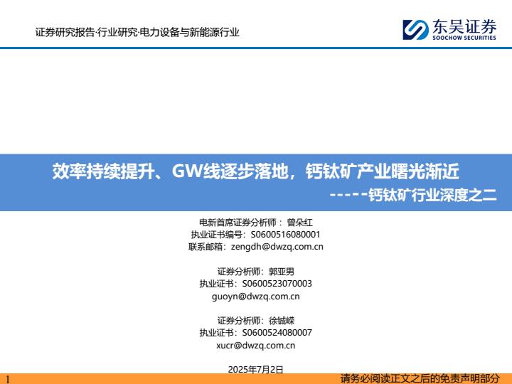 【19030E】钙钛矿行业深度之二:效率持续提升、GW线逐步落地,钙钛矿产业曙光渐近 24小时前 7月 2 预览结束,本文件为PDF文档,一共45页,请购买后,下载查看 资源下载下载价格59 H币VIP免费升级VIP立即购买下载或充值问题请将订单号发送到:2907878669@qq.com ,我们会在24小时内为您处理 能源化工
