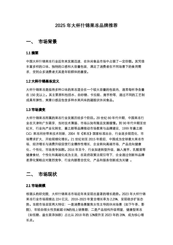 【19613E】2025年大杯什锦果冻品牌推荐:果冻新势力崛起,Z世代甜品自由催生行业新变局 7小时前 7月 2 预览结束,本文件为PDF文档,一共7页,请购买后,下载查看 资源下载下载价格59 H币VIP免费升级VIP立即购买下载或充值问题请将订单号发送到:2907878669@qq.com ,我们会在24小时内为您处理 消费零售