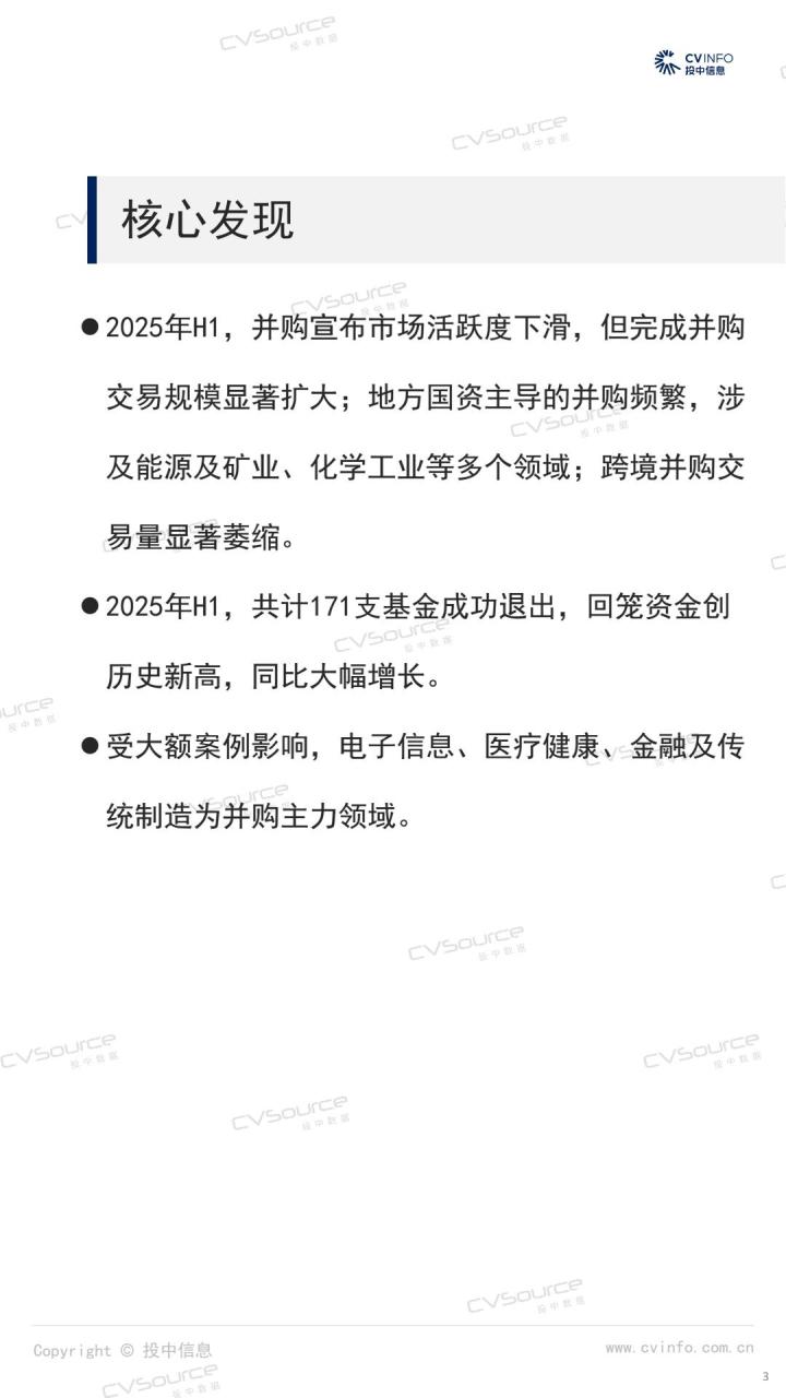 【19200E】【投中研究院】投中统计:2025H1并购市场冷热分化 基金回笼资金达近期高点 1周前 7月 6 预览结束,本文件为PDF文档,一共23页,请购买后,下载查看 资源下载下载价格59 H币VIP免费升级VIP立即购买下载或充值问题请将订单号发送到:2907878669@qq.com ,我们会在24小时内为您处理 银行金融