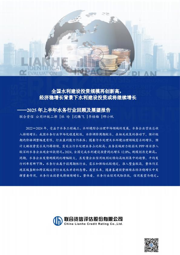 【19298E】【联合资信】2025年上半年水务行业回顾及展望报告:全国水利建设投资规模再创新高,经济稳增长背景下水利建设投资或将继续增长 1周前 7月 5 预览结束,本文件为PDF文档,一共25页,请购买后,下载查看 资源下载下载价格59 H币VIP免费升级VIP立即购买下载或充值问题请将订单号发送到:2907878669@qq.com ,我们会在24小时内为您处理 金融分析