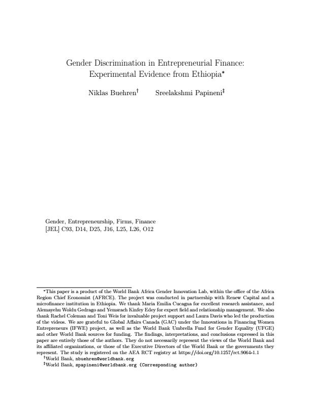 【19234E】【世界银行】创业融资中的性别歧视:来自埃塞俄比亚的实验证据 1周前 7月 6 预览结束,本文件为PDF文档,一共39页,请购买后,下载查看 资源下载下载价格59 H币VIP免费升级VIP立即购买下载或充值问题请将订单号发送到:2907878669@qq.com ,我们会在24小时内为您处理 银行金融