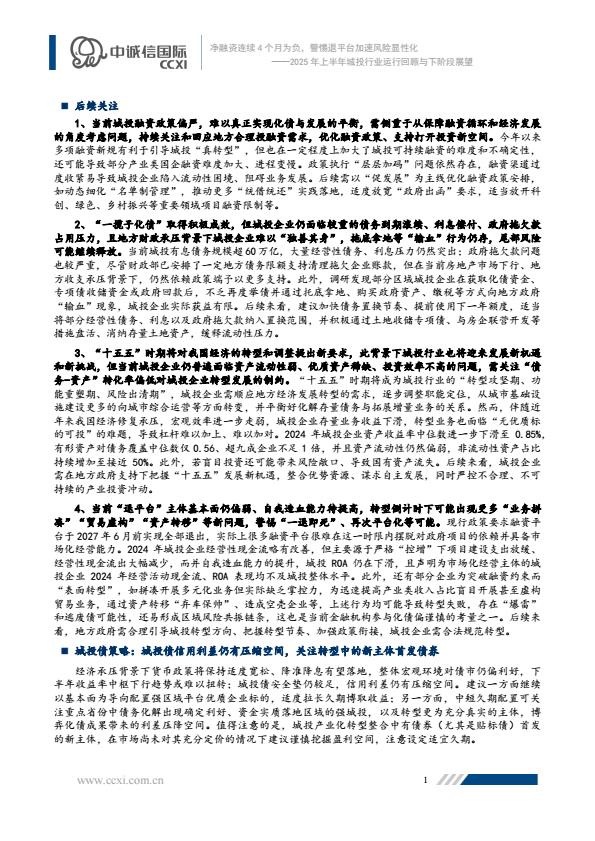 【19562E】2025年上半年城投行业运行回顾与下阶段展望:净融资连续4个月为负,警惕退平台加速风险显性化 1周前 7月 5 预览结束,本文件为PDF文档,一共20页,请购买后,下载查看 资源下载下载价格59 H币VIP免费升级VIP立即购买下载或充值问题请将订单号发送到:2907878669@qq.com ,我们会在24小时内为您处理 金融分析