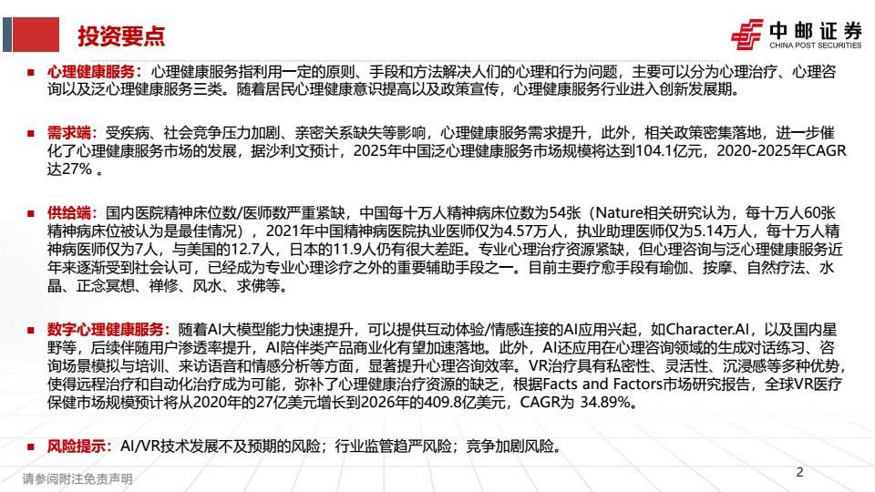 【18931E】心理健康服务行业深度报告 1周前 7月 5 预览结束,本文件为PDF文档,一共46页,请购买后,下载查看 资源下载下载价格59 H币VIP免费升级VIP立即购买下载或充值问题请将订单号发送到:2907878669@qq.com ,我们会在24小时内为您处理 医疗保健