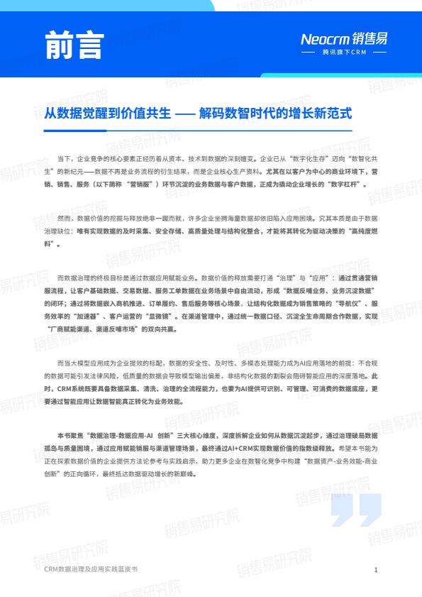 【19187E】【销售易】2025年CRM数据治理及应用实践蓝皮书 1周前 7月 6 预览结束,本文件为PDF文档,一共35页,请购买后,下载查看 资源下载下载价格59 H币VIP免费升级VIP立即购买下载或充值问题请将订单号发送到:2907878669@qq.com ,我们会在24小时内为您处理 科技电子