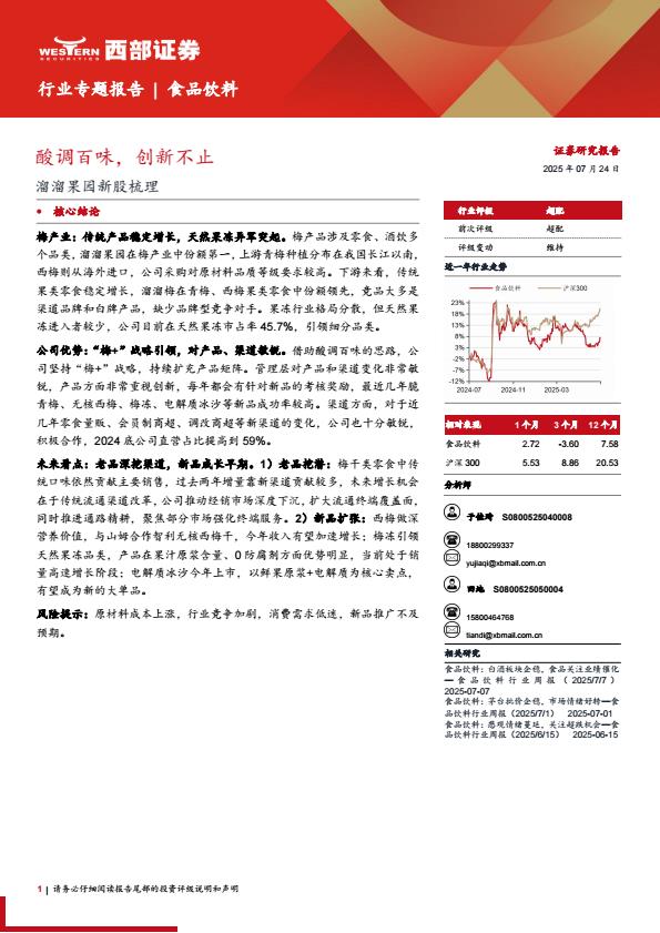 【18947E】食品饮料行业:溜溜果园新股梳理酸调百味创新不止 1周前 7月 7 预览结束,本文件为PDF文档,一共20页,请购买后,下载查看 资源下载下载价格59 H币VIP免费升级VIP立即购买下载或充值问题请将订单号发送到:2907878669@qq.com ,我们会在24小时内为您处理 食品饮料