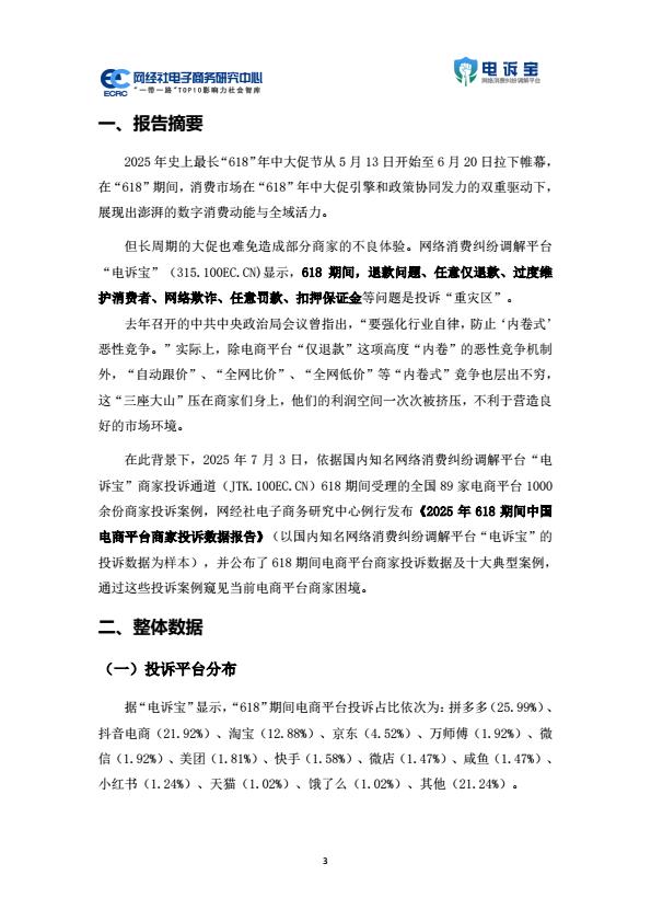 【19198E】【网经社】2025年618期间中国电商平台商家投诉数据报告 6天前 7月 3 预览结束,本文件为PDF文档,一共24页,请购买后,下载查看 资源下载下载价格59 H币VIP免费升级VIP立即购买下载或充值问题请将订单号发送到:2907878669@qq.com ,我们会在24小时内为您处理 消费零售