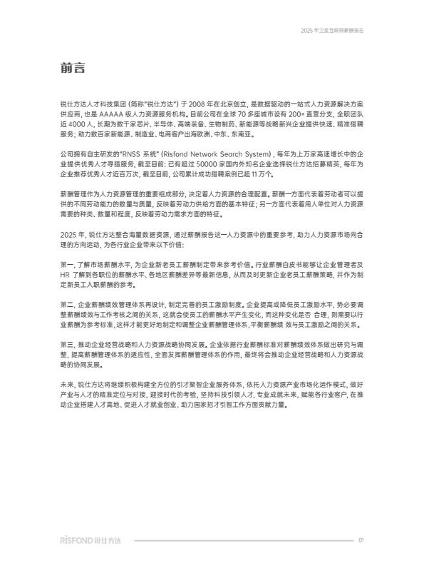 【19252E】【锐仕方达人才科技集团】2025年卫星互联网薪酬报告 1周前 7月 6 预览结束,本文件为PDF文档,一共38页,请购买后,下载查看 资源下载下载价格59 H币VIP免费升级VIP立即购买下载或充值问题请将订单号发送到:2907878669@qq.com ,我们会在24小时内为您处理 科技电子