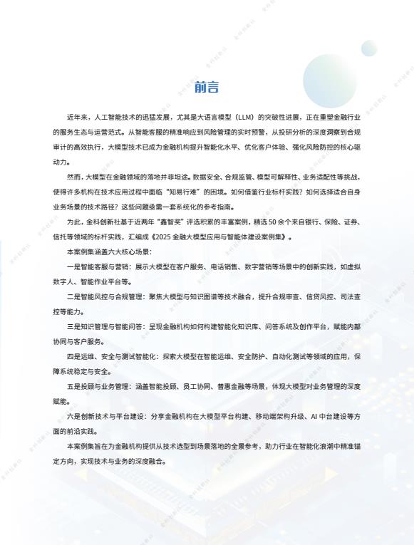 【19317E】【金科创新社】2025年金融大模型应用与智能体建设案例集 5天前 7月 4 预览结束,本文件为PDF文档,一共228页,请购买后,下载查看 资源下载下载价格59 H币VIP免费升级VIP立即购买下载或充值问题请将订单号发送到:2907878669@qq.com ,我们会在24小时内为您处理 科技电子