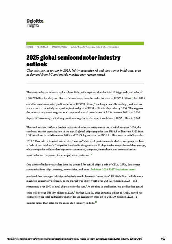 【19573E】2025年全球半导体产业展望报告 5天前 7月 3 预览结束,本文件为PDF文档,一共20页,请购买后,下载查看 资源下载下载价格59 H币VIP免费升级VIP立即购买下载或充值问题请将订单号发送到:2907878669@qq.com ,我们会在24小时内为您处理 科技电子