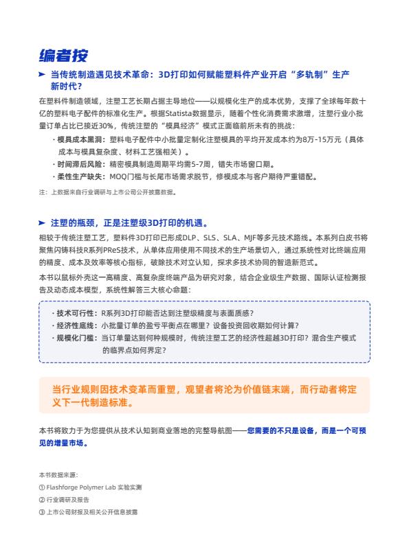 【19628E】2025年3D打印如何以注塑级标准破解小批量生产困局白皮书 9小时前 7月 2 预览结束,本文件为PDF文档,一共18页,请购买后,下载查看 资源下载下载价格59 H币VIP免费升级VIP立即购买下载或充值问题请将订单号发送到:2907878669@qq.com ,我们会在24小时内为您处理 科技电子