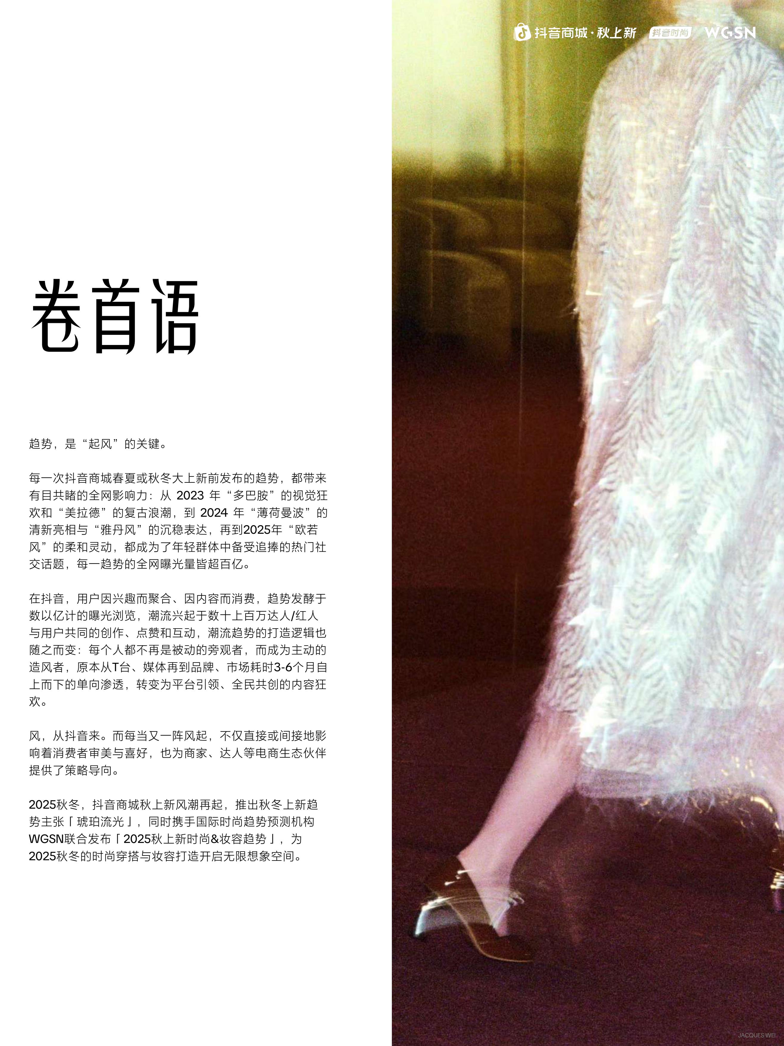 【20936E】抖音商城&WGSN:2025秋上新时尚&妆容趋势报告 1天前 8月 1 预览结束,本文件为PDF文档,一共22页,请购买后,下载查看 资源下载下载价格59 H币VIP免费升级VIP立即购买下载或充值问题请将订单号发送到:2907878669@qq.com ,我们会在24小时内为您处理 纺织服装