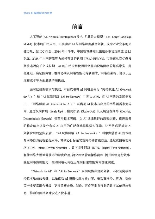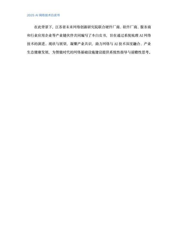 【20686E】【江苏省未来网络创新研究院】2025年AI网络技术白皮书 1天前 8月 2 预览结束,本文件为PDF文档,一共122页,请购买后,下载查看 资源下载下载价格59 H币VIP免费升级VIP立即购买下载或充值问题请将订单号发送到:2907878669@qq.com ,我们会在24小时内为您处理 通讯