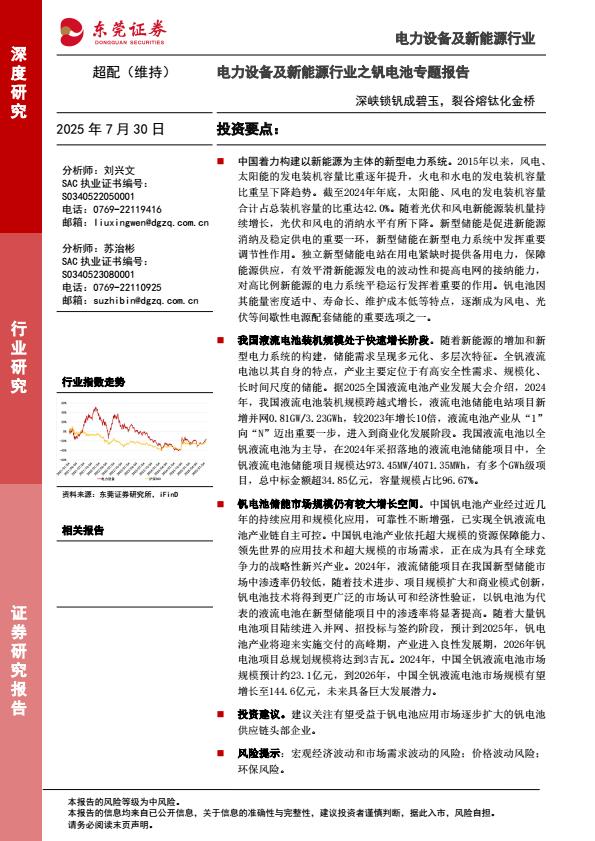 【20554E】电力设备及新能源行业之钒电池专题报告:深峡锁钒成碧玉,裂谷熔钛化金桥 1天前 8月 1 预览结束,本文件为PDF文档,一共18页,请购买后,下载查看 资源下载下载价格59 H币VIP免费升级VIP立即购买下载或充值问题请将订单号发送到:2907878669@qq.com ,我们会在24小时内为您处理 能源化工