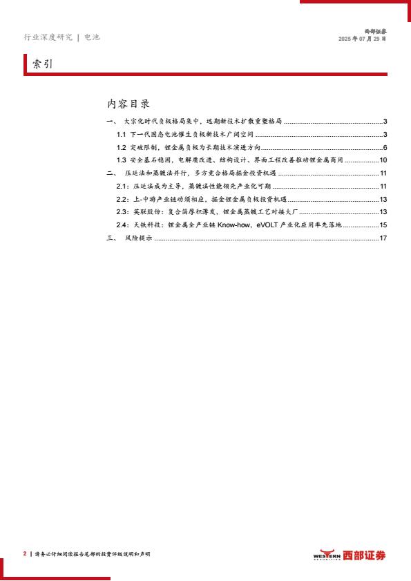 【19977E】【西部证券】固态电池行业系列报告(二):锂金属负极,卡位与颠覆,技术分化下机遇几何 1天前 8月 2 预览结束,本文件为PDF文档,一共18页,请购买后,下载查看 资源下载下载价格59 H币VIP免费升级VIP立即购买下载或充值问题请将订单号发送到:2907878669@qq.com ,我们会在24小时内为您处理 科技电子
