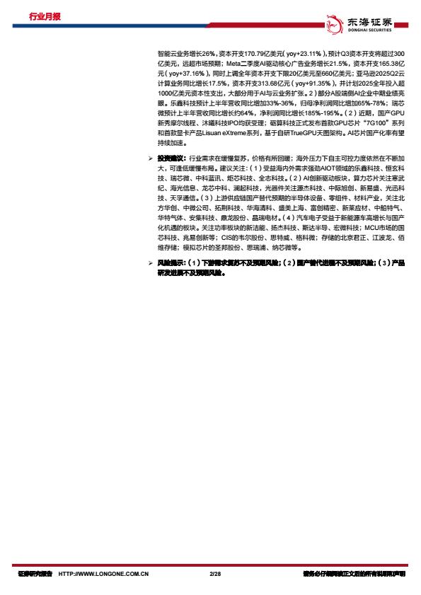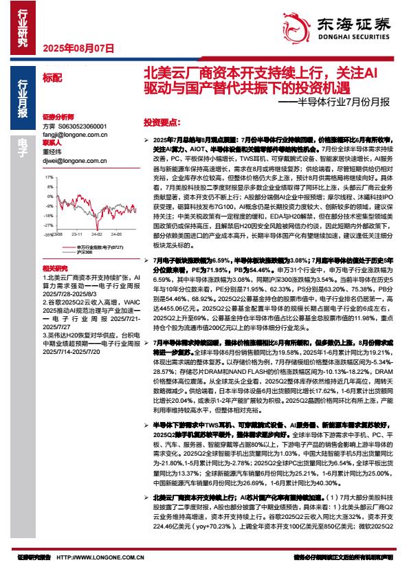 【20255E】【东海证券】半导体行业7月份月报:北美云厂商资本开支持续上行,关注AI驱动与国产替代共振下的投资机遇 1天前 8月 2 预览结束,本文件为PDF文档,一共28页,请购买后,下载查看 资源下载下载价格59 H币VIP免费升级VIP立即购买下载或充值问题请将订单号发送到:2907878669@qq.com ,我们会在24小时内为您处理 科技电子