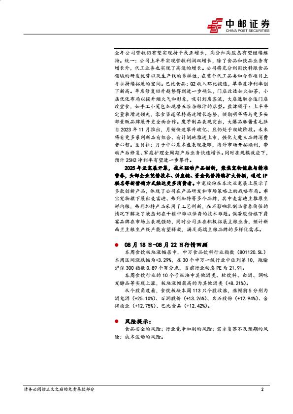 【19808E】【中邮证券】食品饮料行业周报:白酒报表端压力加速释放助力股价表现,宠物经济蓬勃向上,大众品多家报表展现经营亮点 1天前 8月 1 预览结束,本文件为PDF文档,一共19页,请购买后,下载查看 资源下载下载价格59 H币VIP免费升级VIP立即购买下载或充值问题请将订单号发送到:2907878669@qq.com ,我们会在24小时内为您处理 食品饮料