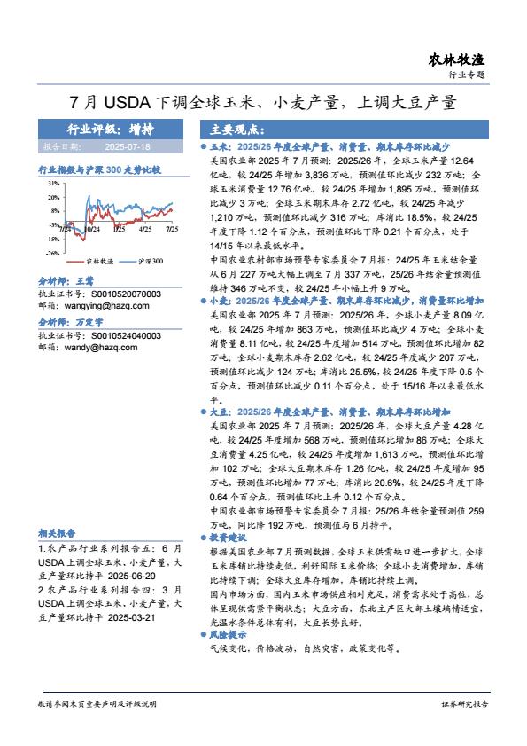 【20114E】【华安证券】农林牧渔行业专题:7月USDA下调全球玉米、小麦产量,上调大豆产量 1天前 8月 3 预览结束,本文件为PDF文档,一共16页,请购买后,下载查看 资源下载下载价格59 H币VIP免费升级VIP立即购买下载或充值问题请将订单号发送到:2907878669@qq.com ,我们会在24小时内为您处理 金融分析