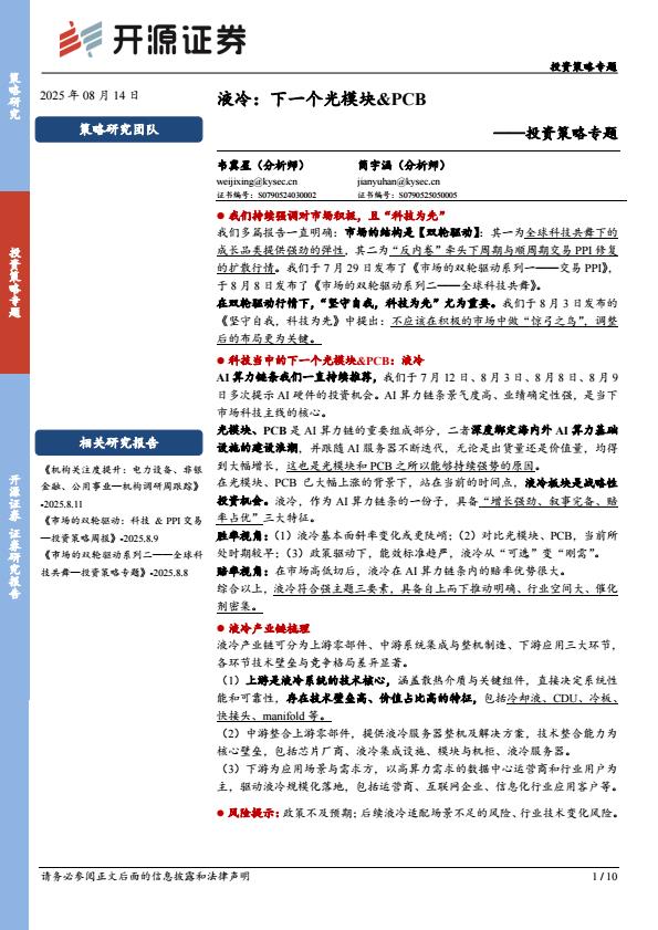 【20025E】【开源证券】投资策略专题:液冷,下一个光模块&PCB 1天前 8月 1 预览结束,本文件为PDF文档,一共10页,请购买后,下载查看 资源下载下载价格59 H币VIP免费升级VIP立即购买下载或充值问题请将订单号发送到:2907878669@qq.com ,我们会在24小时内为您处理 科技电子