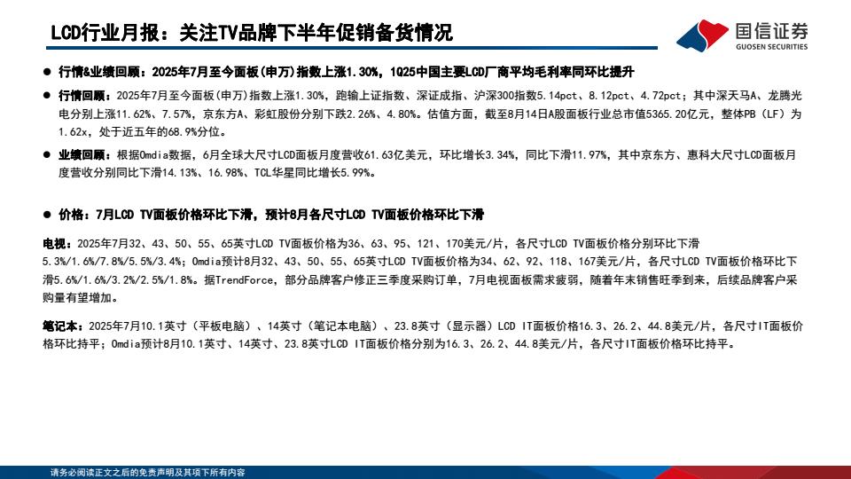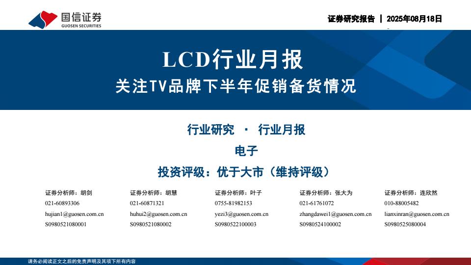 【20142E】【国信证券】LCD行业月报:关注TV品牌下半年促销备货情况 1天前 8月 1 预览结束,本文件为PDF文档,一共20页,请购买后,下载查看 资源下载下载价格59 H币VIP免费升级VIP立即购买下载或充值问题请将订单号发送到:2907878669@qq.com ,我们会在24小时内为您处理 金融分析