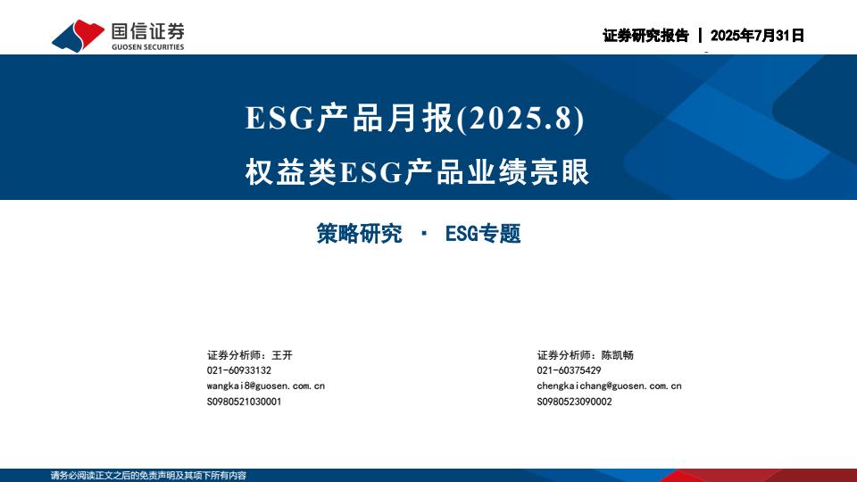 【20144E】【国信证券】SG产品月报(2025.8):权益类SG产品业绩亮眼 1天前 8月 1 预览结束,本文件为PDF文档,一共24页,请购买后,下载查看 资源下载下载价格59 H币VIP免费升级VIP立即购买下载或充值问题请将订单号发送到:2907878669@qq.com ,我们会在24小时内为您处理 金融分析