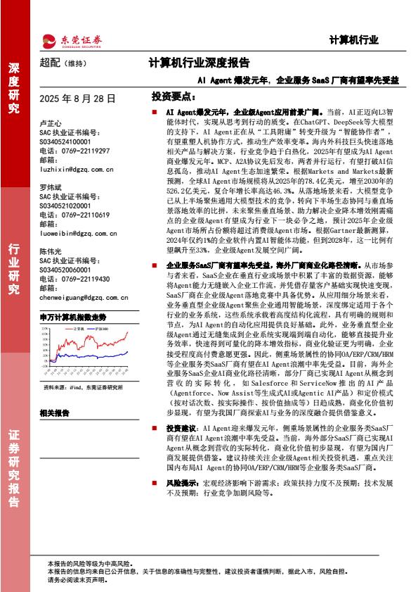 【20951E】计算机行业深度报告:AI Agent爆发元年,企业服务SaaS厂商有望率先受益 1天前 8月 1 预览结束,本文件为PDF文档,一共18页,请购买后,下载查看 资源下载下载价格59 H币VIP免费升级VIP立即购买下载或充值问题请将订单号发送到:2907878669@qq.com ,我们会在24小时内为您处理 科技电子