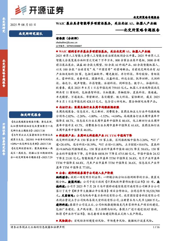 【20038E】【开源证券】北交所策略专题报告:WAIC展出具身智能等多项前沿展品,关注北证AI、机器人产业链 1天前 8月 1 预览结束,本文件为PDF文档,一共16页,请购买后,下载查看 资源下载下载价格59 H币VIP免费升级VIP立即购买下载或充值问题请将订单号发送到:2907878669@qq.com ,我们会在24小时内为您处理 科技电子