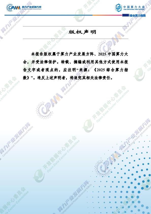 【20965E】【CAICT算力】2025综合算力指数报告 1天前 8月 2 预览结束,本文件为PDF文档,一共54页,请购买后,下载查看 资源下载下载价格59 H币VIP免费升级VIP立即购买下载或充值问题请将订单号发送到:2907878669@qq.com ,我们会在24小时内为您处理 科技电子