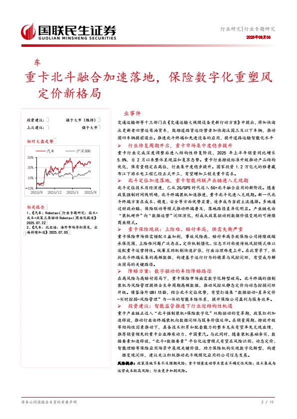 【20860E】汽车行业:重卡北斗融合加速落地保险数字化重塑风险定价新格局 1天前 8月 1 预览结束,本文件为PDF文档,一共20页,请购买后,下载查看 资源下载下载价格59 H币VIP免费升级VIP立即购买下载或充值问题请将订单号发送到:2907878669@qq.com ,我们会在24小时内为您处理 银行金融