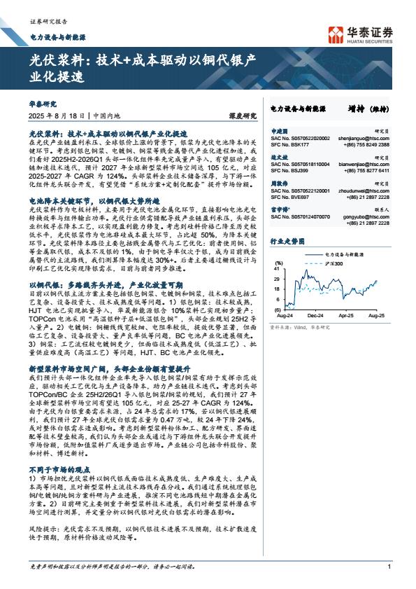 【21027E】电力设备与新能源行业光伏浆料:技术+成本驱动以铜代银产业化提速 1天前 8月 1 预览结束,本文件为PDF文档,一共34页,请购买后,下载查看 资源下载下载价格59 H币VIP免费升级VIP立即购买下载或充值问题请将订单号发送到:2907878669@qq.com ,我们会在24小时内为您处理 能源化工