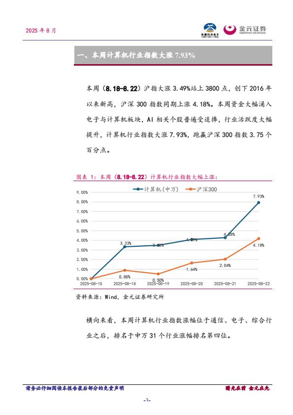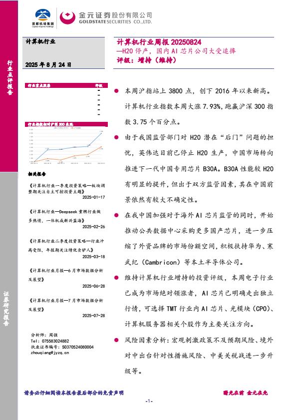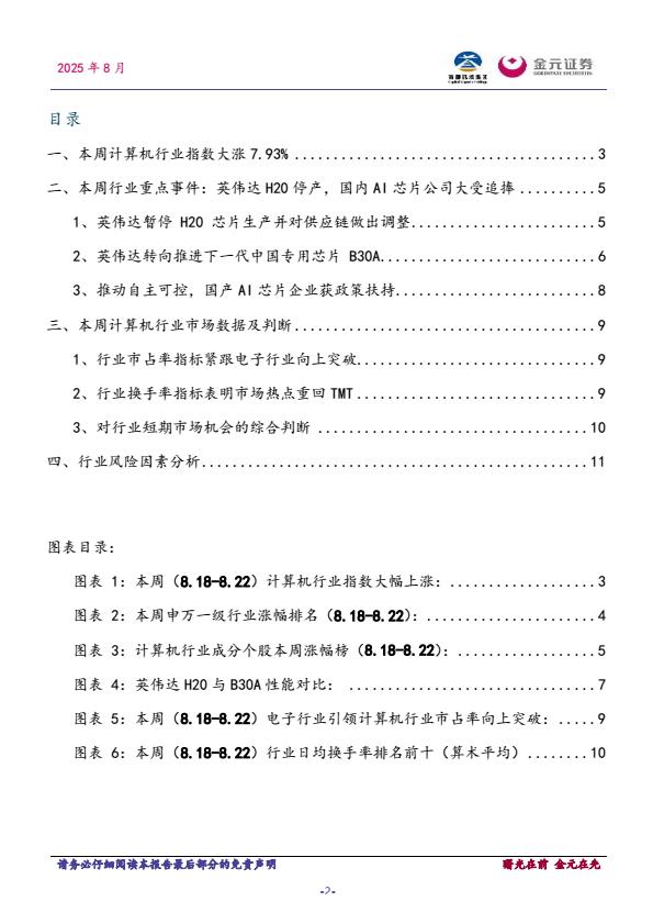 【20043E】【金元证券】计算机行业周报:H20停产,国内AI芯片公司大受追捧 1天前 8月 1 预览结束,本文件为PDF文档,一共13页,请购买后,下载查看 资源下载下载价格59 H币VIP免费升级VIP立即购买下载或充值问题请将订单号发送到:2907878669@qq.com ,我们会在24小时内为您处理 科技电子