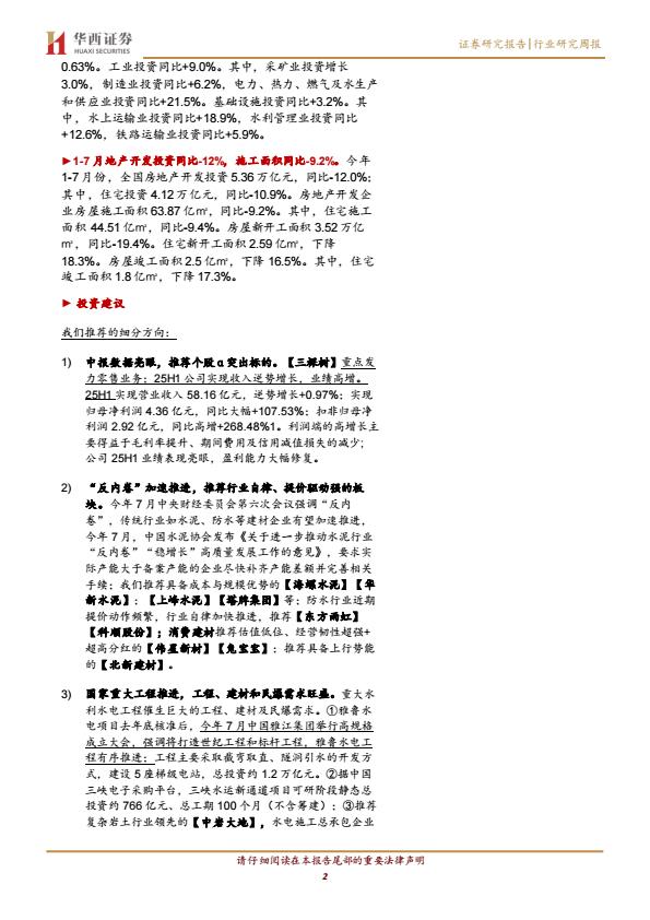 【20060E】【华西证券】建筑材料行业:17月水、电固投高增,关注区域基建板块 1天前 8月 1 预览结束,本文件为PDF文档,一共21页,请购买后,下载查看 资源下载下载价格59 H币VIP免费升级VIP立即购买下载或充值问题请将订单号发送到:2907878669@qq.com ,我们会在24小时内为您处理 交通基建