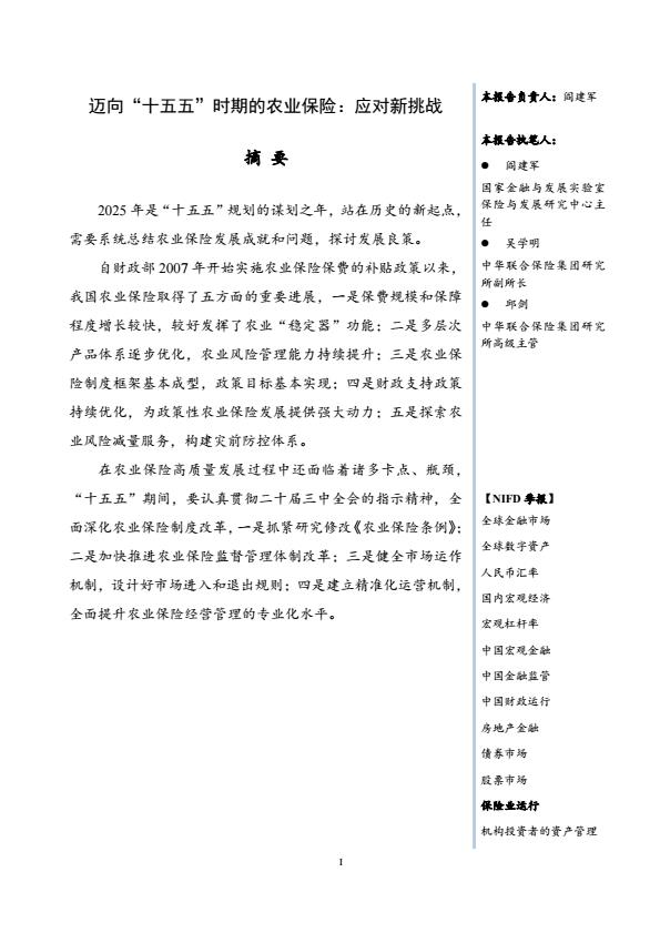 【20866E】【国家金融与发展实验室】迈向“十五五”时期的农业保险:应对新挑战——2025H1保险业运行 1天前 8月 1 预览结束,本文件为PDF文档,一共12页,请购买后,下载查看 资源下载下载价格59 H币VIP免费升级VIP立即购买下载或充值问题请将订单号发送到:2907878669@qq.com ,我们会在24小时内为您处理 银行金融