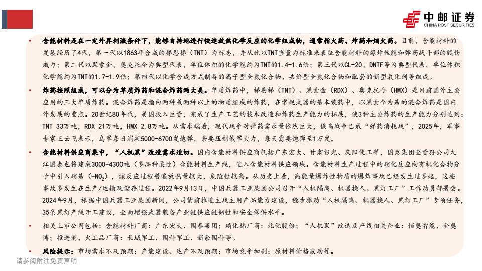 【19810E】【中邮证券】军工行业军用含能材料:武器发挥作战效能的关键,以第二代为主力、第三代走向量产 23小时前 8月 1 预览结束,本文件为PDF文档,一共35页,请购买后,下载查看 资源下载下载价格59 H币VIP免费升级VIP立即购买下载或充值问题请将订单号发送到:2907878669@qq.com ,我们会在24小时内为您处理 军工