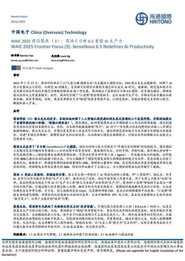 【20979E】【海通国际】中国电子行业WAIC2025前沿聚焦(3):商汤日日新6.5重塑AI生产力 1天前 8月 4 预览结束,本文件为PDF文档,一共11页,请购买后,下载查看 资源下载下载价格59 H币VIP免费升级VIP立即购买下载或充值问题请将订单号发送到:2907878669@qq.com ,我们会在24小时内为您处理 科技电子