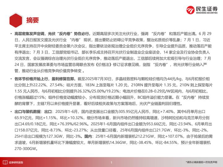 【20013E】【民生证券】洞鉴光伏行业8月刊:“反内卷”持续发酵,光伏底部反转节点来临 1天前 8月 2 预览结束,本文件为PDF文档,一共26页,请购买后,下载查看 资源下载下载价格59 H币VIP免费升级VIP立即购买下载或充值问题请将订单号发送到:2907878669@qq.com ,我们会在24小时内为您处理 能源化工
