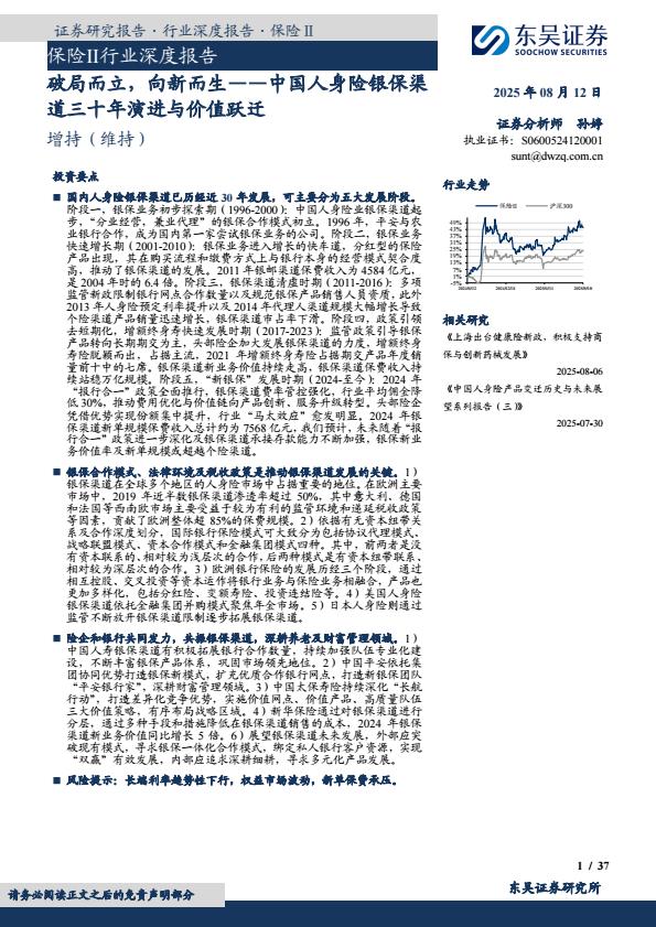 【20873E】保险Ⅱ行业深度报告:破局而立,向新而生——中国人身险银保渠道三十年演进与价值跃迁 1天前 8月 2 预览结束,本文件为PDF文档,一共37页,请购买后,下载查看 资源下载下载价格59 H币VIP免费升级VIP立即购买下载或充值问题请将订单号发送到:2907878669@qq.com ,我们会在24小时内为您处理 银行金融