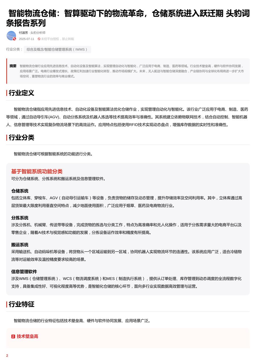 【20805E】智能物流仓储:智算驱动下的物流革命,仓储系统进入跃迁期 头豹词条报告系列 1天前 8月 1 预览结束,本文件为PDF文档,一共15页,请购买后,下载查看 资源下载下载价格59 H币VIP免费升级VIP立即购买下载或充值问题请将订单号发送到:2907878669@qq.com ,我们会在24小时内为您处理 汽车物流